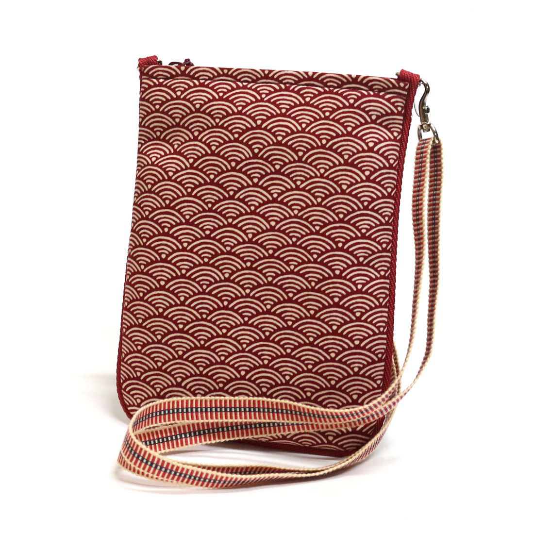 お祭り姿や浴衣など、懐入れに最適なサイズの和柄ショルダー小物入れです。お祭り時の雨や汗などから中に入れた物が濡れない様、弱耐水性の裏地を使用してます。また、側面にパイピングを施して、しっかりとした形状を出します。 芯地にスポンジを挟んで、手触りもソフトに仕上げました。