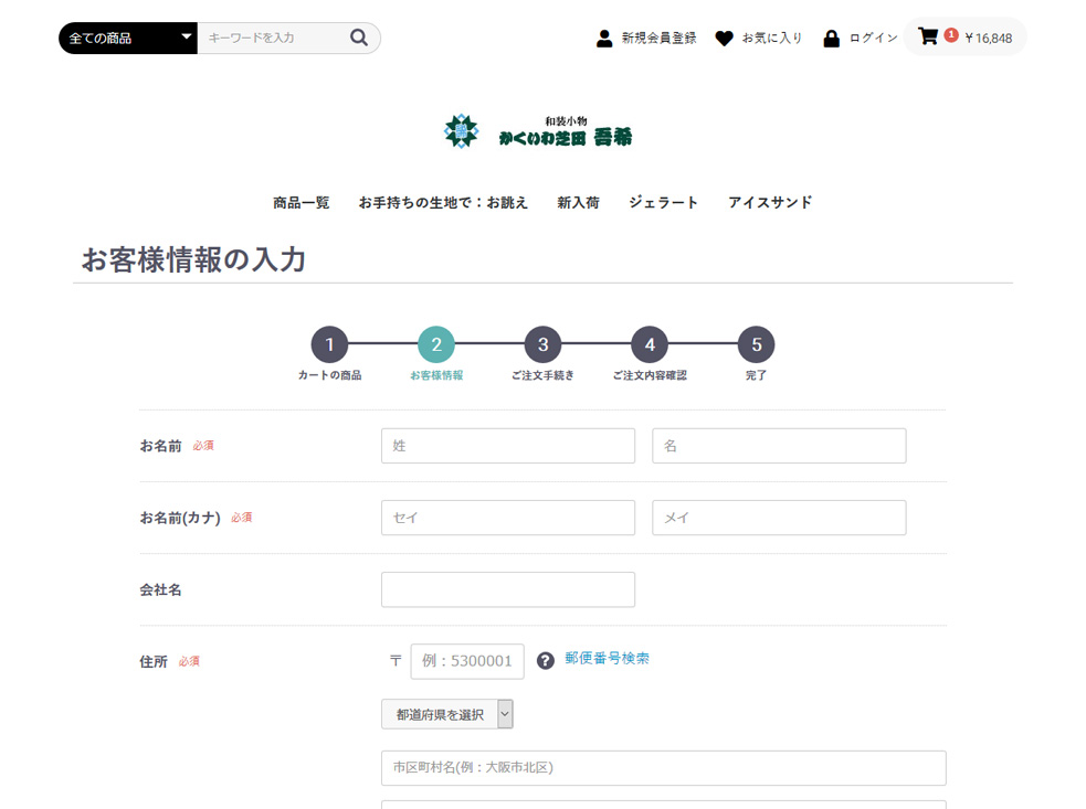 会員登録されていない方、新規の方はお届け先住所を入力してください。