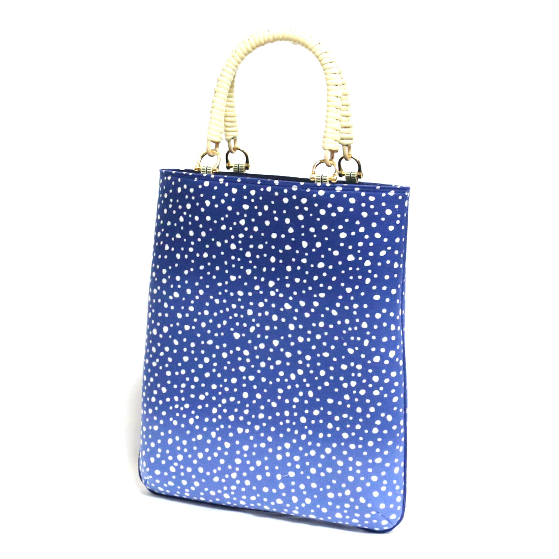 編み込んだ籐を持ち手に施したA4サイズも楽々入る大きめ手提げです。