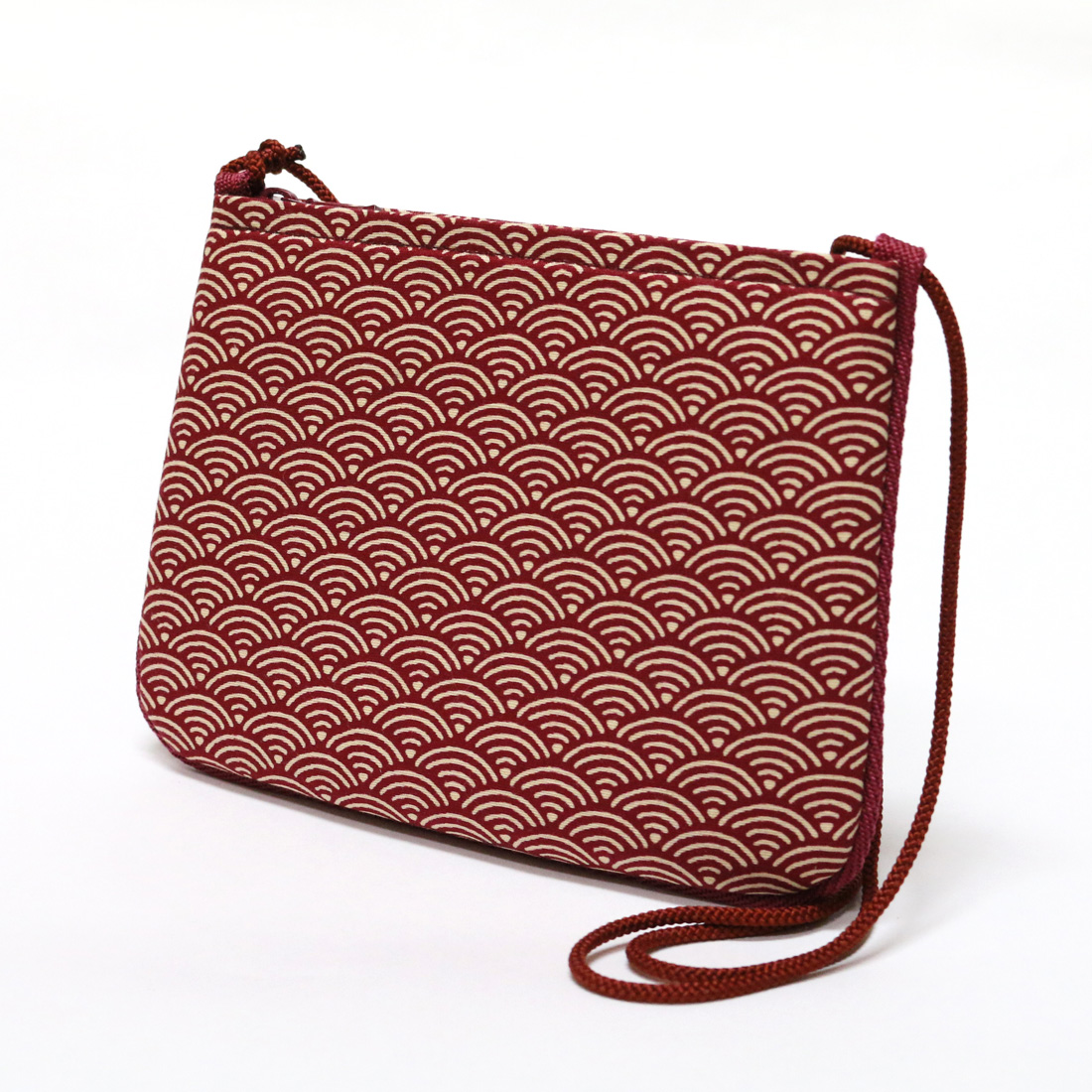お祭り姿や浴衣など、懐入れに最適なサイズの和柄ショルダー小物入れです。お祭り時の雨や汗などから中に入れた物が濡れない様、弱耐水性の裏地を使用してます。また、側面にパイピングを施して、しっかりとした形状を出します。 芯地にスポンジを挟んで、手触りもソフトに仕上げました。