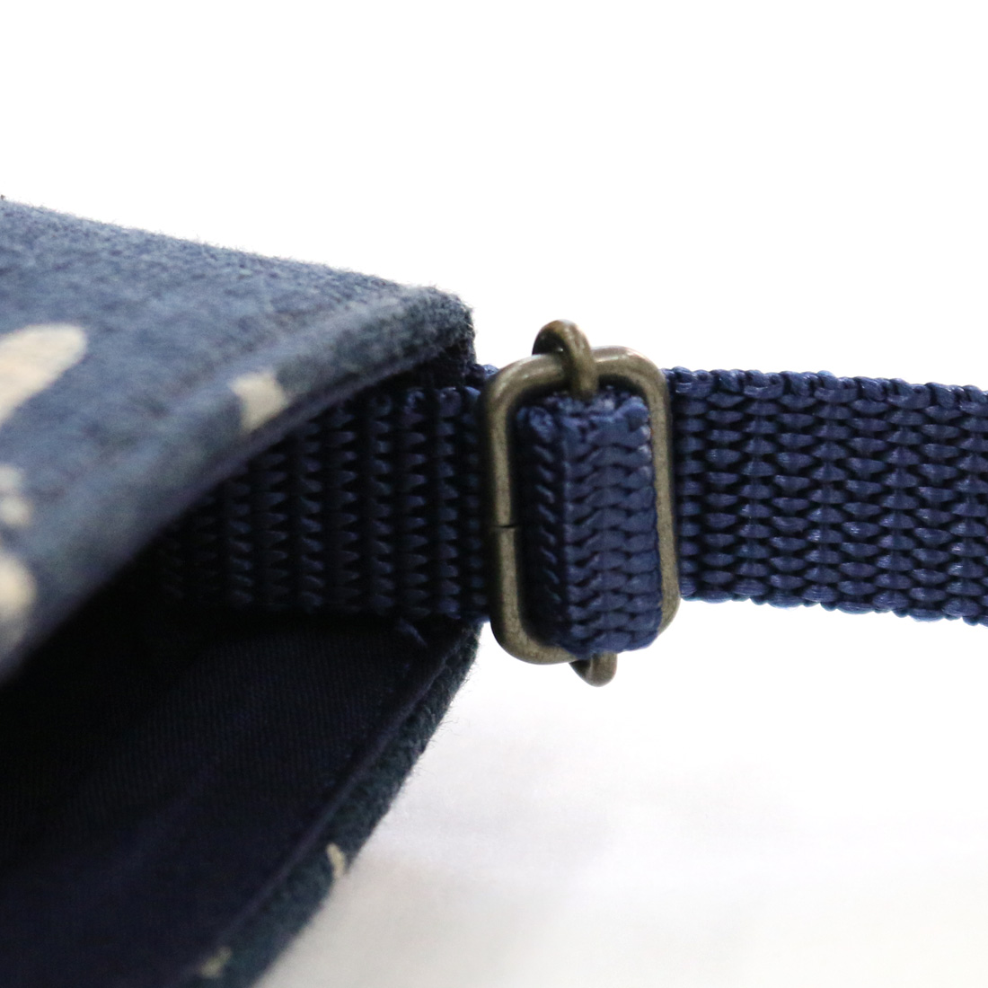 肩紐は、調節可能。口元は、ポイントにもなるボタンと紐で閉じる仕様になっております。内ポケット付き。